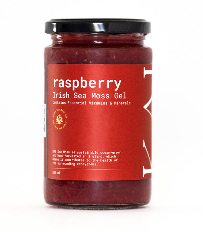 KAI Sea Moss gel malina, prehransko dopolnilo,narejeno iz ročno nabrane morske alge, ki raste v Irskem morju. Že stoletja se uporablja zaradi svojih prehranskih in zdravilnih učinkov, zlasti na Irskem in v Karibih. Tradicionalno so ga uživali v času lakote zaradi visoke vsebnosti mineralov.