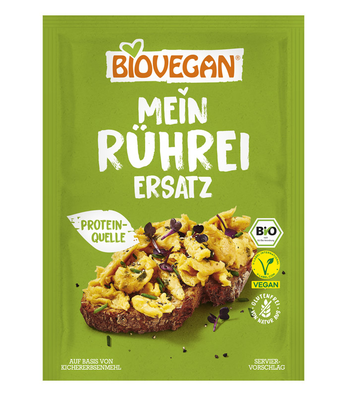 Biovegan veganski nadomestek za umešano jajce je pripravek za veganski scramble, ki omogoča, da si pripravimo preprosti scramble, brez jajc. Pripravek je izdelan iz ekoloških sestavin in brez glutena.